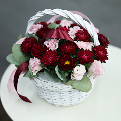 Композиция в корзине "Лидия" из астр, эустом и эвкалипта