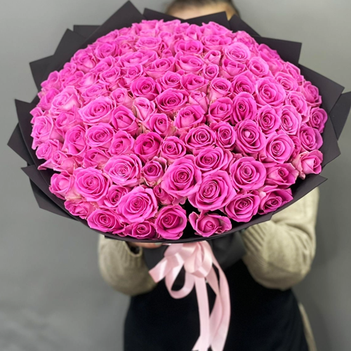 Букет 101 розовой розы Кения (40 см)