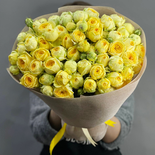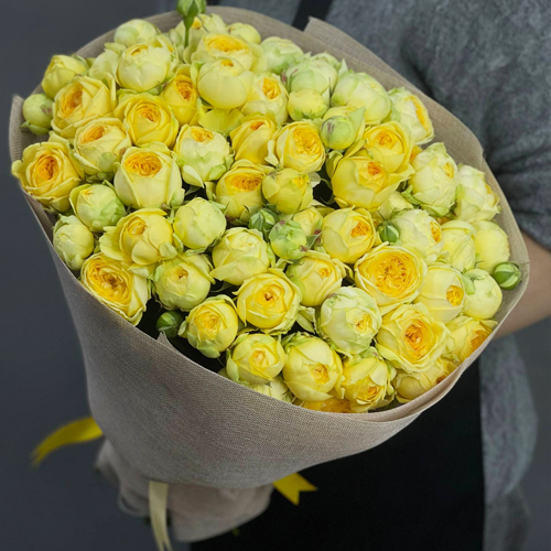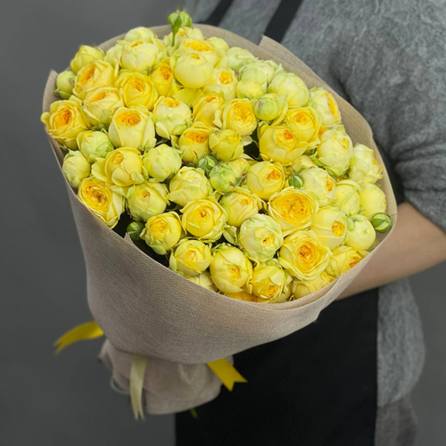 Букет из 29 кустовых лимонных пионовидных роз з (50 см)